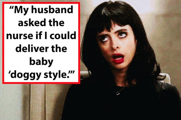 2. "While discussing the different positions I could deliver in with my nurse, my husband asked if I could deliver 'doggy style.'"