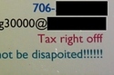 Right is spelled correctly however it is used in the wrong context. It should read "Tax write-off". The excessive exclamation points are in poor taste as well as the multiple colors for every line on the card. I wonder if she got any business?