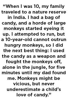 "At the camp I went to as a kid, the bathrooms were separate from the cabins. At night, you were supposed to wake someone up to go to the bathroom with you. I'm up late one night reading a scary book, when I suddenly realize, at peak terror, that I have to pee really badly.