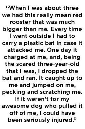 "A few years ago I was visiting a friend in a shared house. One of the occupants had two bull mastiffs. Both were friendly at first, but then something switched. One of the dogs jumped up at me – I’m 5’4”, and the dog standing on its hinds was about 6ft – and it’s mouth was around my neck. My friend pulled the dog off me and I tried sprint off the lawn, with blood pouring out of my neck, but the dog clamped onto my arm. Luckily I escaped, and my friend drove me to ER."