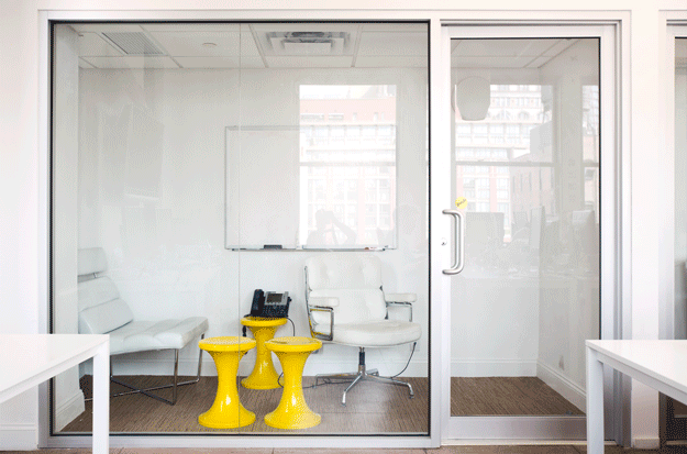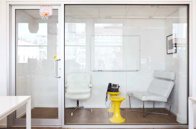 The BuzzFeed office is pretty much one wide open space with lots of windows. There's not a lot of room for painting.