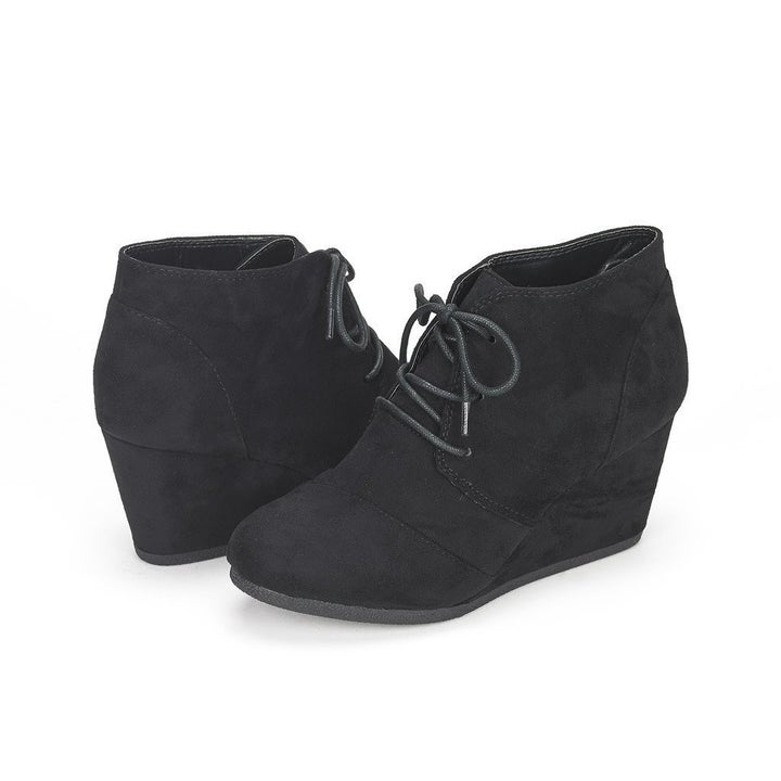 1. A pair of wedged booties that might put a wedge between you and your other shoes — you'll completely forget about them once you see how comfortable and cute these are.