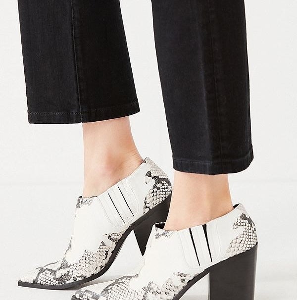 12. A pair of faux snakeskin ankle boots for bringing some Western flair to your get-up without the aches and pains of being a real cowboy.