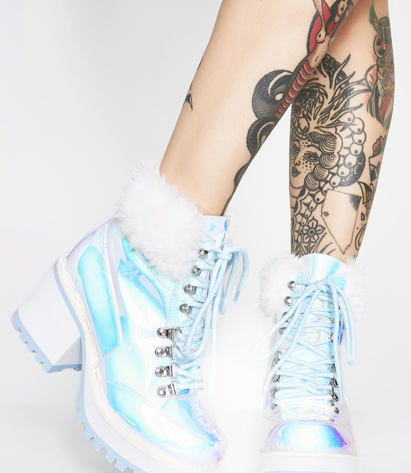 13. Holographic booties for a "yeti going to a rave" kind of look.