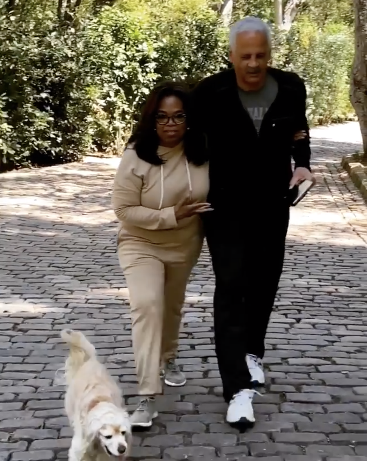 After two weeks of quarantining separately and "love-chats" through the guesthouse window, Oprah and Stedman finally got to reunite and take the "short walk to freedom" home.
