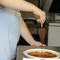 …and batter it in bacon bits batter then deep-fry it and serve with syrup dipping sauce!