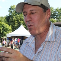 With pulled pork, beans, slaw, and BBQ sauce served in a waffle cone.
