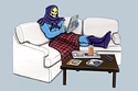 From Kiersten at You Fail comes the skull head reading the Sunday papers. I heard he's doing the skulldoku - hahhahhahaha... kill me.