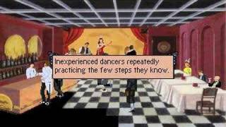 All the Laura Bow fans out there, say "AIIEEEEEE!" One of the best video game songs out there. It will stay stuck in your head for months. Which is more than we can say for our poor bald friend Ziggy (lower right corner), who has trouble keeping his head stuck on in the game.