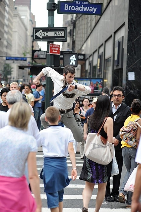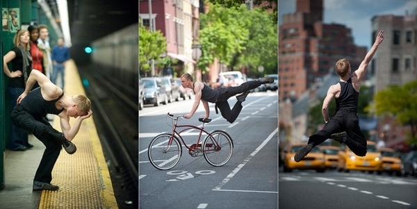 New York photographer Jordan Matter‘s “Dancers Among Us” project features performers from the Paul Taylor Dance Company performing guerrilla dance moves in iconic Manhattan locations. Some of them are amusing, while others are simply beautiful. Check them all out below.