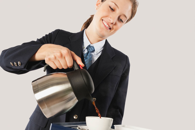 Adivinhe se estes comissários de bordo estão servindo chá ou café