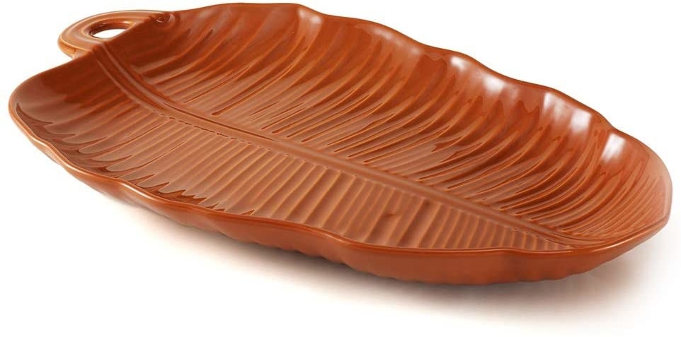 6. Esta travessa grande em formato de folha, que vai dar até medo de usar e quebrar. –R$ 195,00