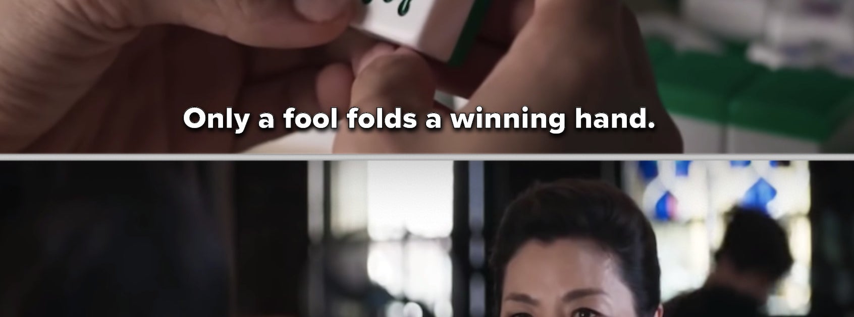 "Quando você percebe o simbolismo com as peças de mahjong, essa cena fica 100 vezes melhor. Para começar, Eleanor sentou-se no assento do crupiê, que também é chamado de assento Leste (representando a Ásia), e Rachel sentou-se no assento Oeste (representando a América). Quanto ao jogo, enquanto acompanhava as peças de Rachel, fiquei me perguntando porque ela não declarou vitória antecipadamante. Então, ela reforçou seu ponto de vista sobre recusar a proposta de Nick, DEIXANDO assim Eleanor ganhar tanto no jogo quanto na vida real. É uma cena muito legal com muitas camadas."