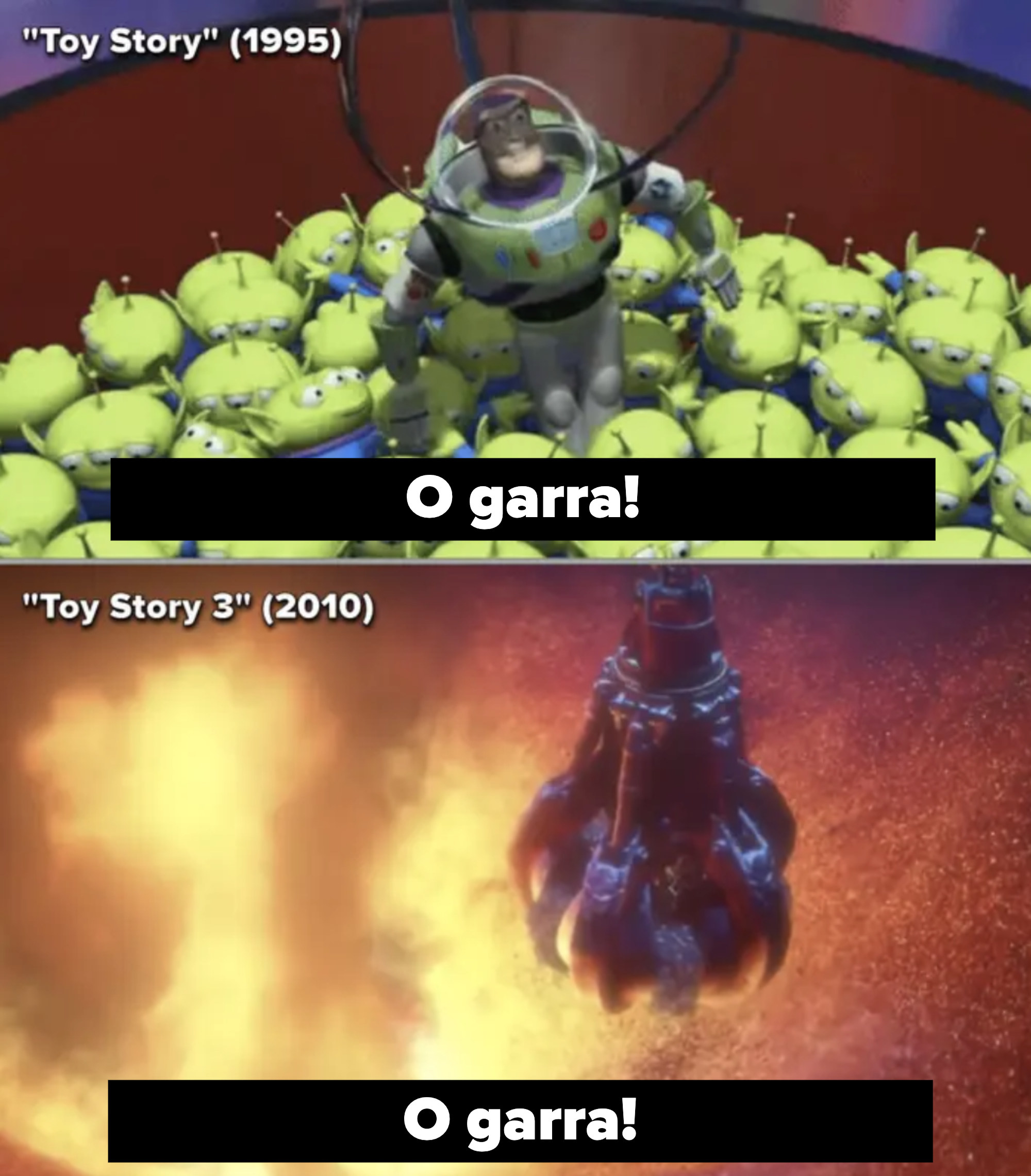8. Em "Toy Story 3", quando os alienígenas usaram "o garra" para salvar todos de serem incinerados, o que foi uma referência genial ao primeiro filme.