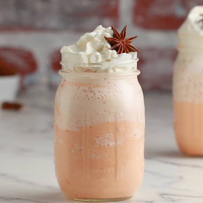 3. Despeje nos copos e faça a cobertura com o chantilly. Decore com os anises-estrelados.