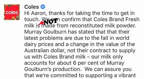 "Coles Brand milk is made from 100 per cent Australian fresh milk," said a spokesperson for Coles.