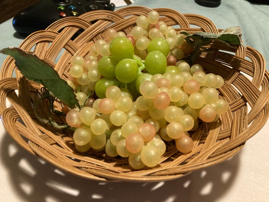 29. A decorative bowl of plastic grapes that she had also had for at least 25 years: