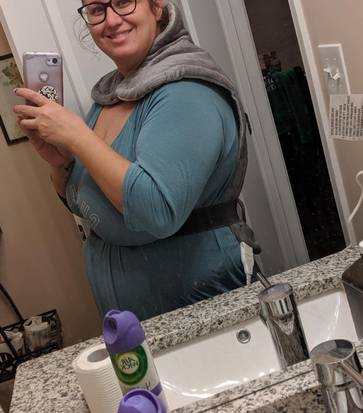7. A Pure Enrichment XL heating pad that'll target your neck, back, and shoulder aches at the same time. It boasts four heat settings, a magnetic neck closure, and an elastic waistband to wrap around yourself and snuggle in.