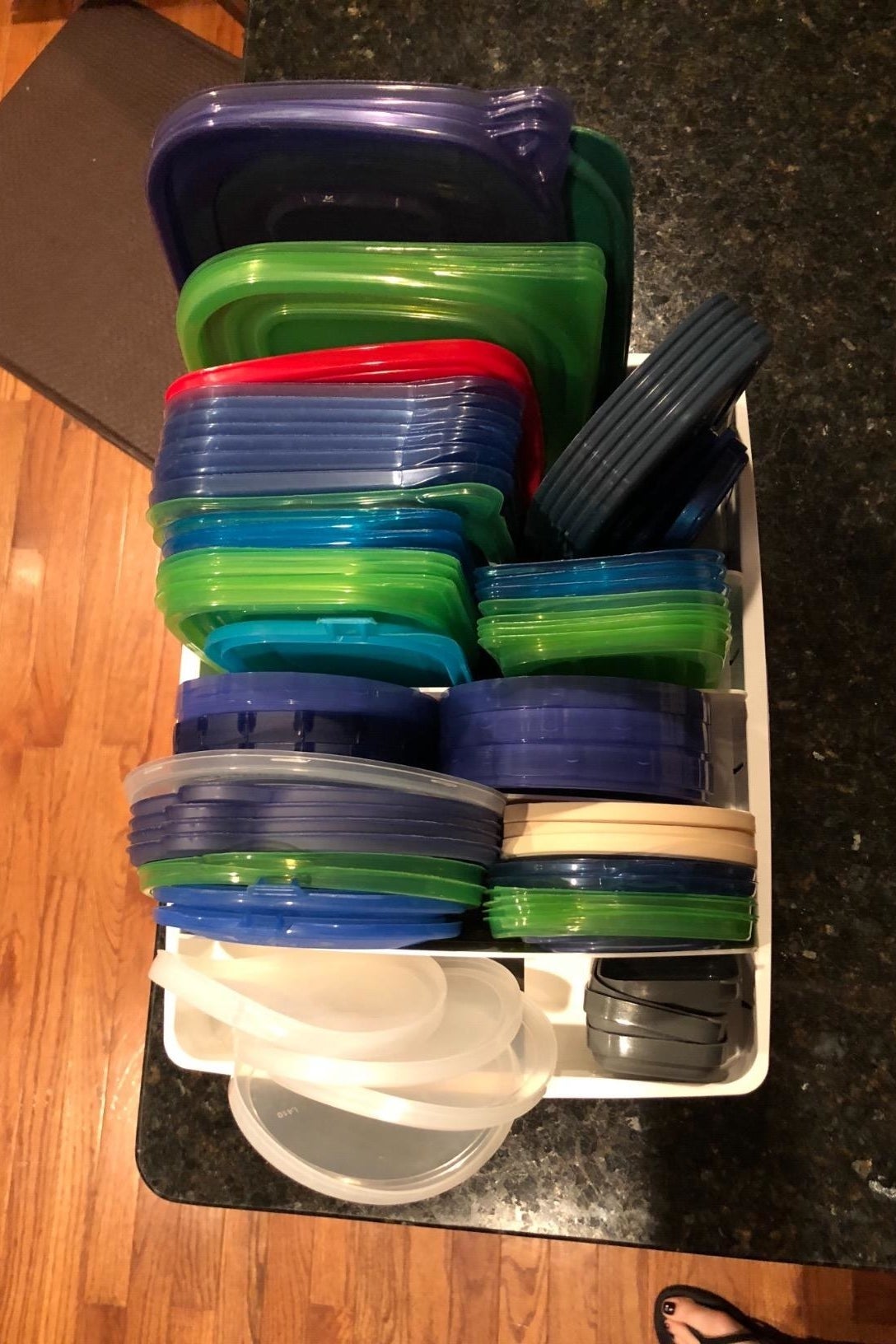 Promising review: "This is a great caddy for all of those maverick Tupperware lids that disappear like socks in a laundry room. I was able to fit quite a few into it. It comes with five separators to cordon off different sizes/shapes of lids (see photos) and consolidate two of three previous lids bins into this one. Plus, according to their card insert, the company is a woman-owned small business, which I’m always happy to support." —Bridget D.