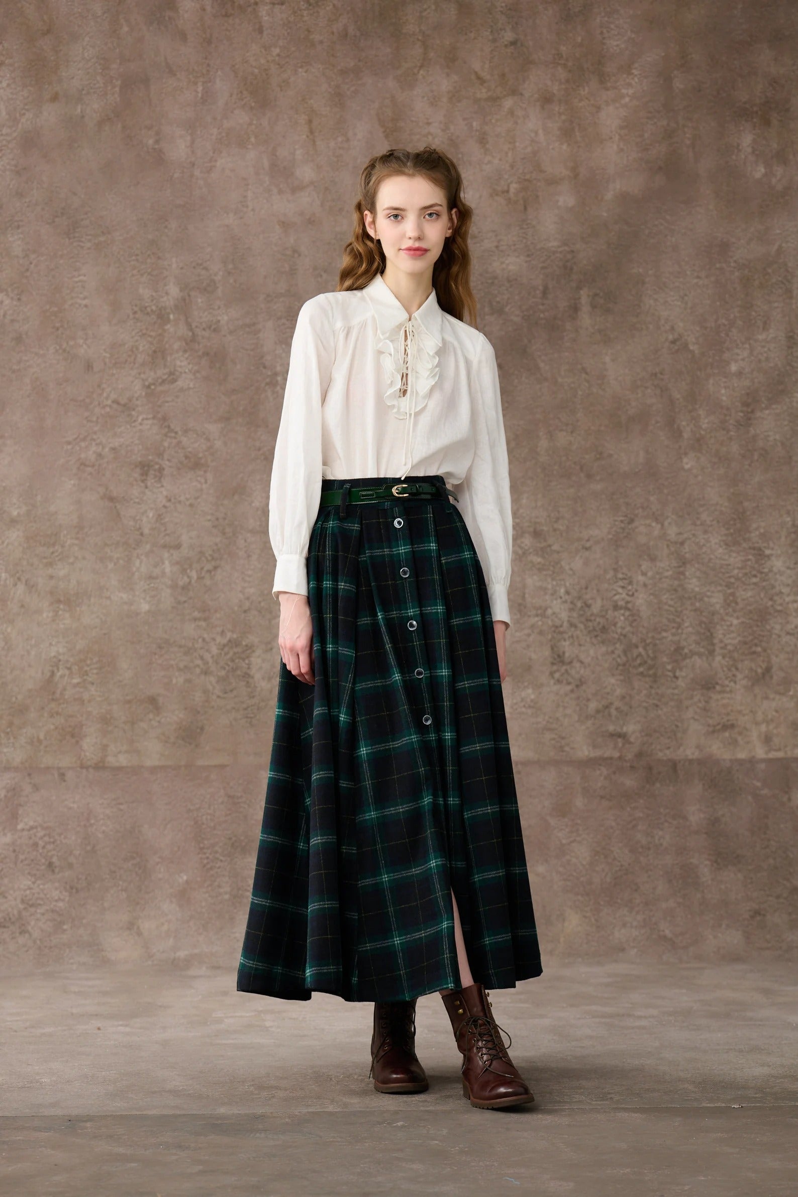 33. A vintage-inspired plaid wool midi skirt, which would look equally at home in the illustrations of a Jane Austen novel as it will in your modern-day closet. The sweet button-front detail is just the cutest.