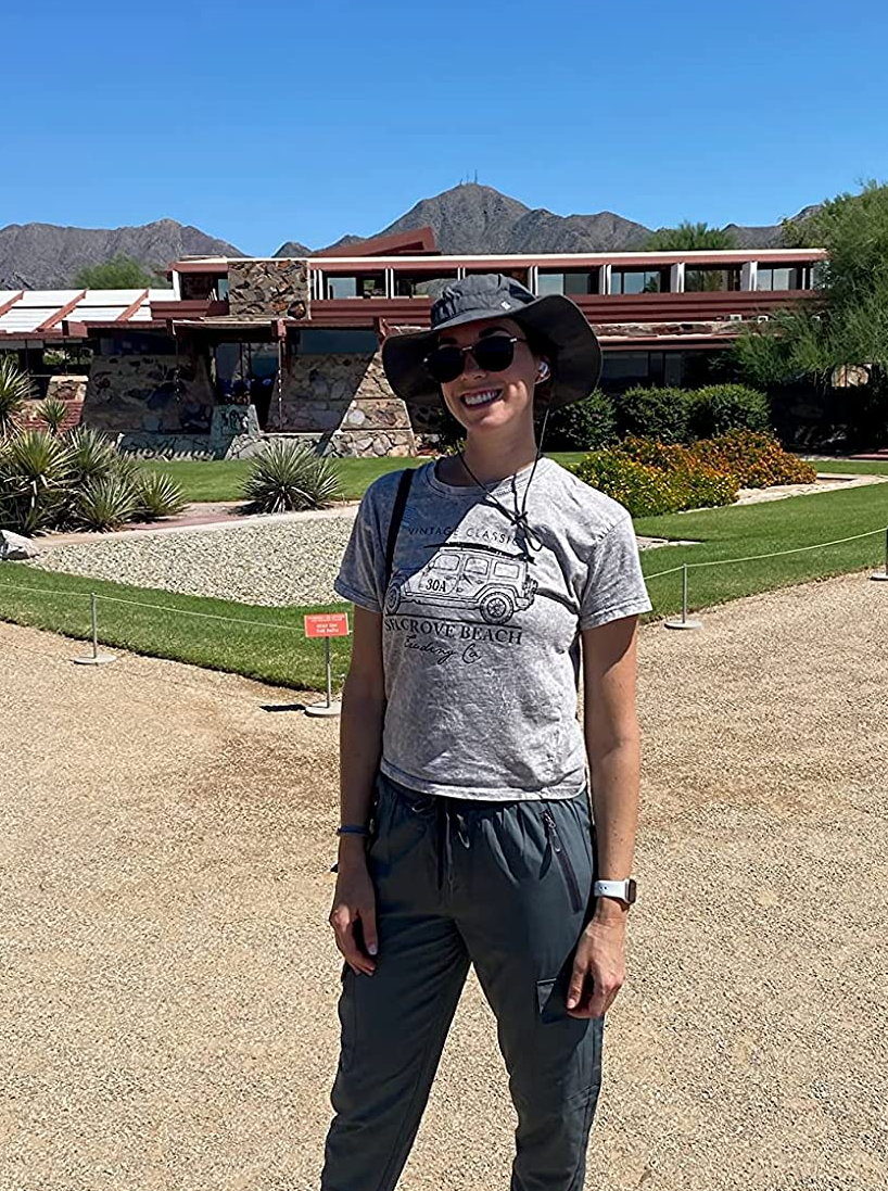 I bought these pants in black last year, and they quickly become one of my go-to pairs. At 5' tall, it's hard for me to find pants that aren't too long without going the junior-size route, so I was pleasantly surprised to find these hit me just above my ankles — the perfect length for pairing with my chunky Doc Martens (my cold weather shoe of choice). I recently packed these on a trip to Italy, and paired them with white sneakers during the day for a cute and casual comfy look. They feel SO sturdy, yet lightweight, and while I haven't had them for a super long time, I can tell they're gonna last me a while.
