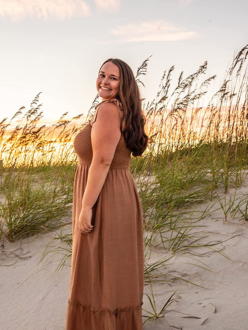 Promising review: "I don't think I've reviewed this dress because 100+ reviews and it selling out on each launch sort of speaks for itself. This is just the perfect dress, for literally anybody! There is not a single day that goes by that I'm wearing one and I don't get a compliment from someone. You can dress them up or dress them down. You can nap in them, then put some heels on and wear it out to dinner! They are so easy to wear. As a person who can't stand wearing a lot of clothes, these are essential to my wardrobe. You cannot go wrong with this dress. Every drop I say I'm going to order something different and I just wind up with more Ellies. You think you shouldn't order another one because you already have one or two? ORDER IT! In all the colors and prints! As for sizing, remember to size down." —Karina