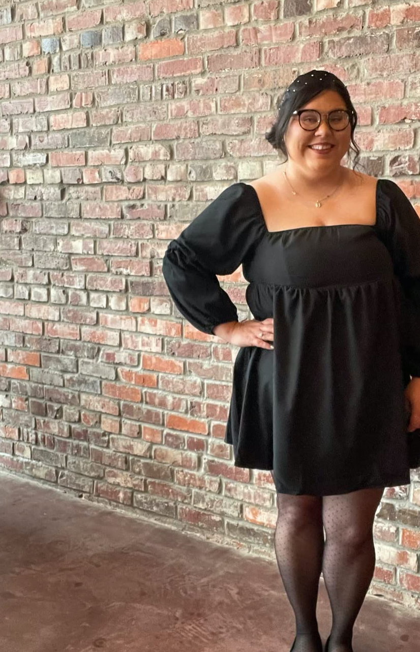 Promising review: "Um, OK, this is my new favorite dress for fall/winter. I just got it and I already wore it for date night with tights underneath, and it was so cute and comfy all night. The skirt of the dress has an extra layer of lining underneath so it’s not see-through at all, and the top part of the dress has elastic on the back so it’s nice and fitted without being uncomfortable. Definitely recommend!" —Kaitlin