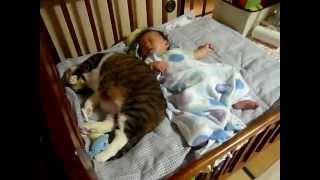 I'm going to warn you, there's not a ton going on here beyond a big fat cat and a baby taking a nap together. But ask yourself this: Do you really need any more than that?