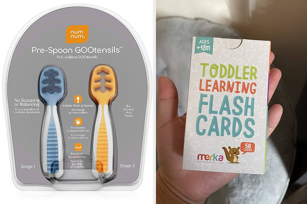 2. A pack of bright laminated flash cards to help toddlers and preschoolers aka little Einsteins soak up their ABCs, 123s, shapes, and colors. They're like knowledge sponges at this age, so why not start them early?