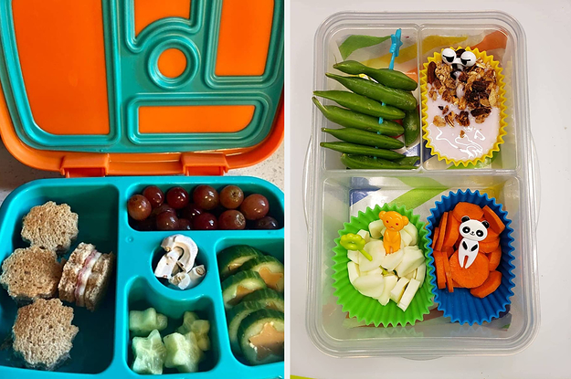 Promising review: "I bought three of these so that I could easily pack my kids’ school lunches and WOW, I love them so much! The serving sizes are perfect, they are relatively easy to clean (the removable tray is dishwasher safe for the top rack), and I swear my kids are eating more well-balanced meals just because of the fun presentation. If you need an extra compartment, just put in a cupcake liner and make your own (see photo). I also love that I am no longer washing multiple little Tupperware containers nor am I going through boxes of small sandwich bags. These are environmentally friendly, super cute, and so functional! I LOVE them!"—Kayla