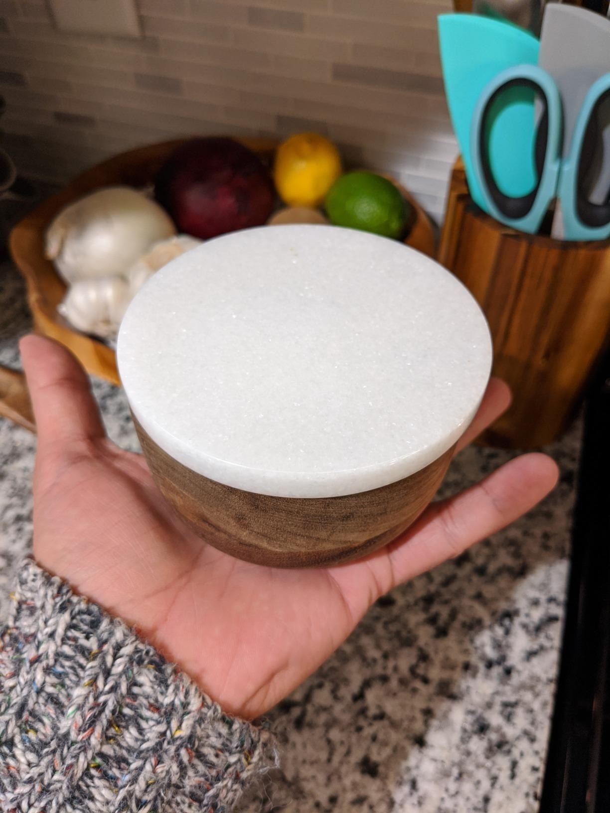 28. An acacia wood and marble salt cellar so you can add a little pizzazz — a la salt bae — to your next dish. If cooking isn't your thing, you can, ofc, use it as a jewelry/trinket dish instead.