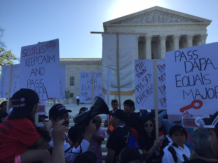 The eight justices appeared to be split 4-4 on whether the 2014 immigration executive action and its effects are legal, but Justice Anthony Kennedy signaled an openness to dismissing the case on standing grounds.