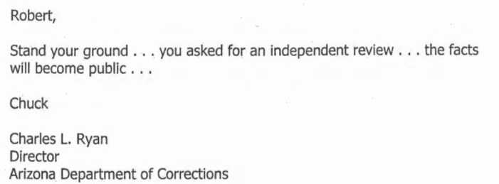 When he started as the director of the Oklahoma Department of Corrections the next month, in February 2014, he sent an email thanking Arizona’s director, and his former boss, Charles Ryan.