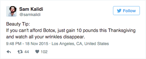 When you wake up from your nap after Thanksgiving Dinner and you're full, but you still eat more anyway.