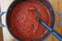 Big-batch tomato sauce is great, but you probably need to store the leftovers in smaller batches. Figure out how much sauce you’ll use at a time — the more people you cook for, the more sauce you’ll need at once — and divide sauce into airtight containers (ball jars, tupperware, etc.) based on that amount. Sauce that you’ll use within a week can be stored in the fridge. Everything else goes in the freezer for up to three months.