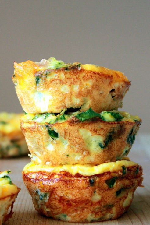 The protein from the eggs will probably keep everybody fuller longer, plus it's an easy and delicious way to eat vegetables in the morning. These mini frittatas are great if everyone is grabbing food from a spread and mingling. This sweet potato, kale, and goat cheese frittata