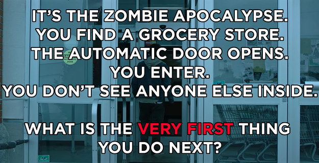 Imagine having the opportunity to take refuge in a grocery store during an apocalypse, but instead you pretend to be a customer like your sibling just got a toy cash register and then a zombie comes in and you have to leave all of the safety and water and cereal behind. Shame!