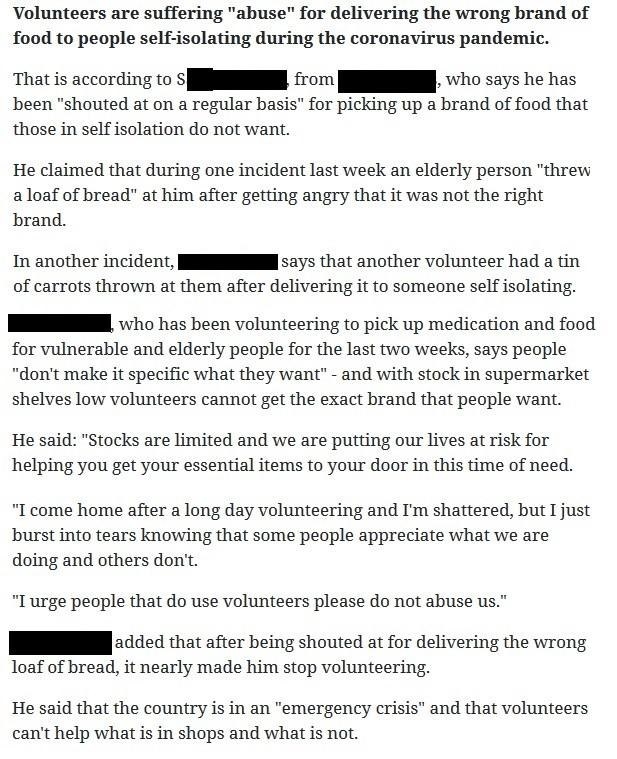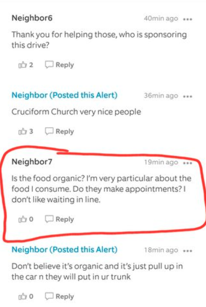 These people treating VOLUNTEERS poorly for getting a brand of food that isn't their favorite.