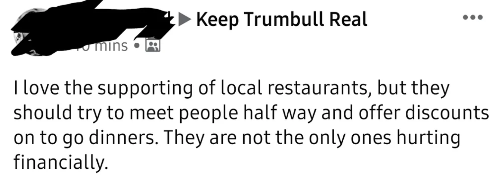 This person criticizing local restaurants that are trying to stay afloat via delivery for not offering better discounts.