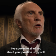 This man below is Malcolm. He's very, very rich and is the source of this yacht group's funds. He's giving a speech to everyone when it suddenly turns into a roast — he calls them all leeches and tells them they've been written out of his will. Except for Suzi, who he is going to sign his will to.