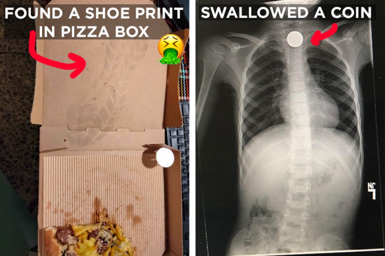 This person who ate half their pizza before realizing there's...a shoe print inside the box.