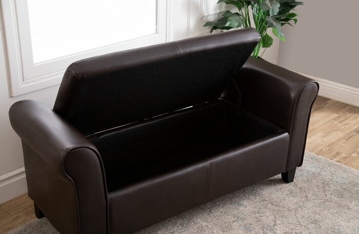 4. A mid-century modern leather sofa that'll liven up your living room without a doubt.