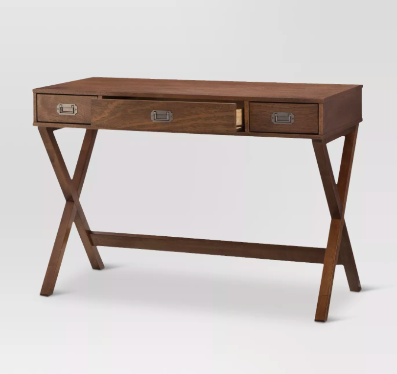 10. A wooden "X-style" desk that'll make getting work done from home a bit easier.