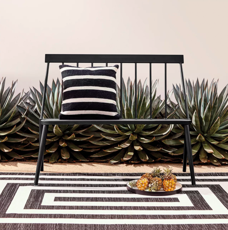 13. A versatile indoor/outdoor metal bench to make the most sitting room out of your tight space.