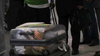 In 2009, Amnesty International crammed a young volunteer into a clear suitcase and plopped her on carousels in several German airports. "Stoppt Menschenhandel" translates to "Stop the Slave Trade." The organization apparently had airport security permissions to do this guerilla stunt.