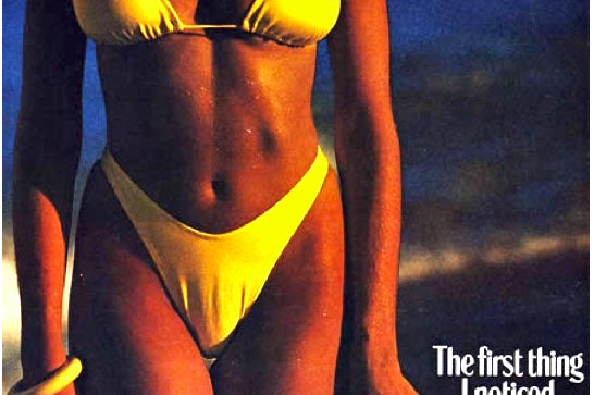 1988 ad for Mickey's Malt Liquor. And, yeah, let's cut the model's head off to make it even more misogynistic. (Plus we then don't have to pay her a full modelling fee, yuck yuck.).