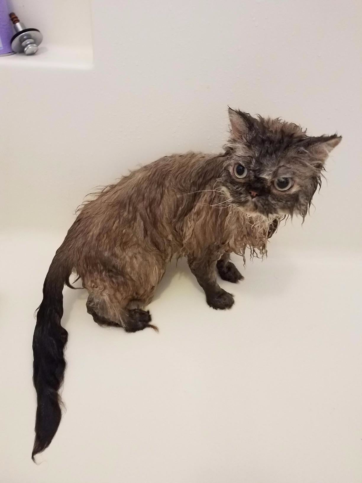 Promising review: "I love this product for my short hair Scottish fold! At first, I was skeptical because he sheds A LOT during the spring. His shedding decreased by half and his fur was left extra fluffy, after two uses! I love this product! The scent is great too, it’s sort of the generic scent for cat washes lol (I’m not sure how to explain the scent but if you know... YOU KNOW)." —Mia Allen