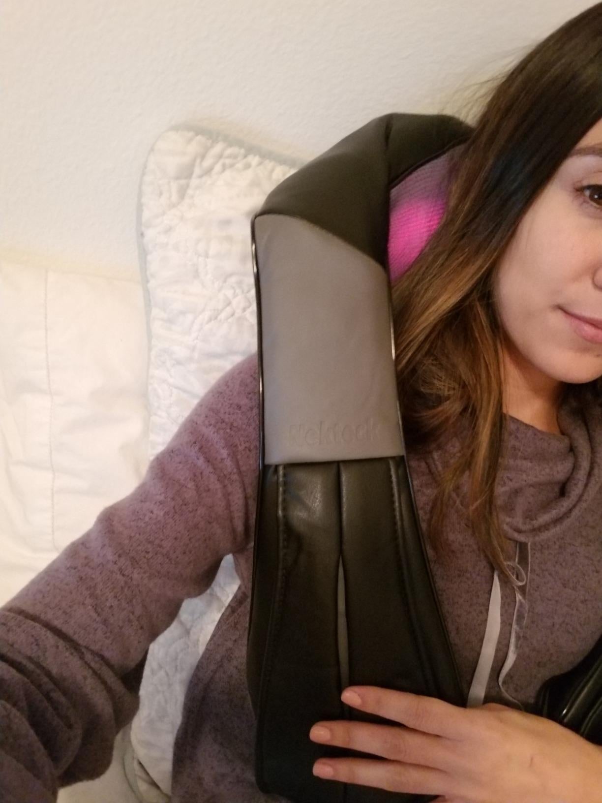 27. Or a neck and back massager so you can enjoy a relaxing massage whenever AND wherever you please. It has eight rotating kneading rollers and three different speed settings so you're in total control of intensity. It also has a soothing heat function that's a one-way ticket to relaxation town!