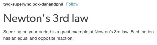 You ever on your period and you sneeze or cough and it's like