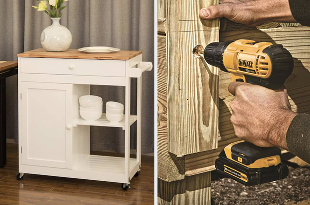 1. An elegant rolling island so you can finally have the perfect amount of storage and counter space in your kitchen. It might just inspire you to cook more often — but no promises.